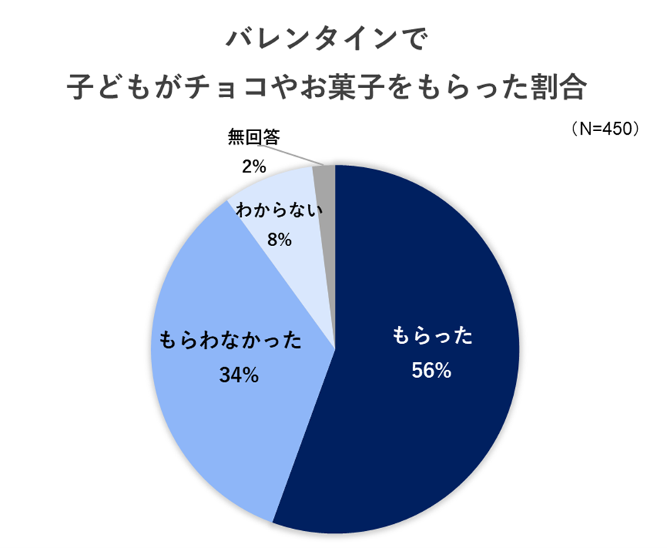 では、昨年のバレンタインでお子さんはチョコやお菓子をもらったのでしょうか。