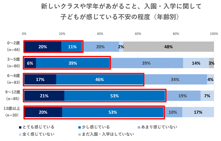 まず、新しいクラスになることや学年があがること、入園・入学することに関して、お子さんがどの程度不安を感じていると思うかを保護者に尋ねました。